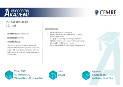 EĞİTİM KODU: OHSE02