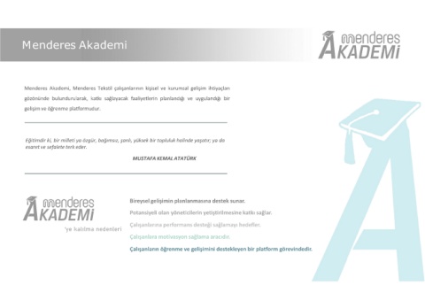 Menderes Akademi, Menderes Tekstil çalışanlarının kişisel ve kurumsal gelişim ihtiyaçları