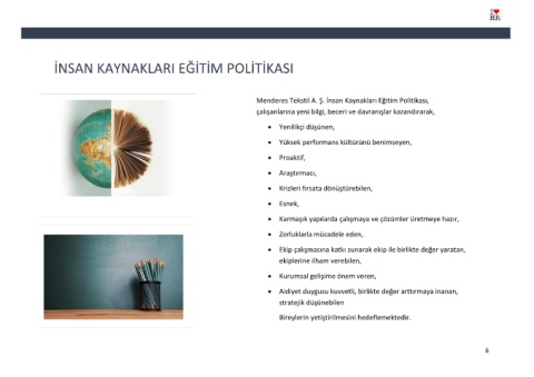 Menderes Tekstil A. Ş. İnsan Kaynakları Eğitim Politikası,