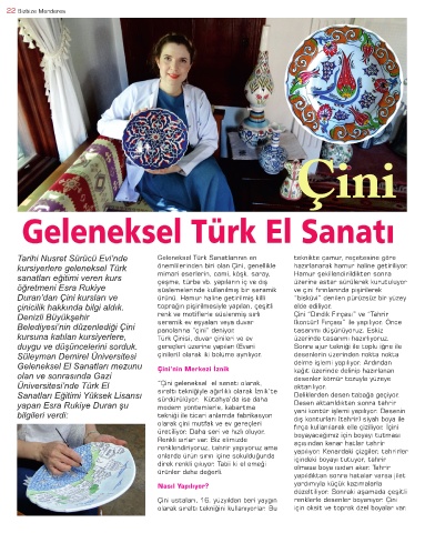 Üniversitesi’nde Türk El “Çini geleneksel el sanatı olarak, aktarılıyor.